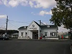 The station was opened on 20 March 1915 as the southern terminus of a line which Miyazaki Prefectural Railway had laid from Miyazaki. In the meantime, Japanese Government Railways (JGR) had opened the Miyazaki Line from Yoshimatsu to Miyakonojō on 8 October 1913 and had been expanding east and north towards Miyazaki in phases, reaching Aoidake by 21 March 1916. On 25 October 1916, the track at Kiyotake was linked up with the track from Aoidake. Miyazaki Prefectural Railway was nationalized. JGR designated the track to Miyazaki as part of the Miyazaki Line and later, on 21 September 1917, the Miyazaki Main Line. By 1923, the Miyazaki Main Line track had reached north to link up with the track of the Nippō Main Line at Shigeoka. On 15 December 1923, the entire stretch of track from Shigeoka through Miyazaki to Yoshimatsu, including Kiyotake, was designated as part of the Nippō Main Line. With the privatization of Japanese National Railways (JNR), the successor of JGR, on 1 April 1987, Kiyotake came under the control of JR Kyushu.[4][5]