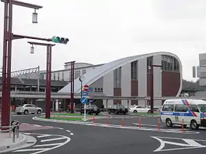 Kizu Station (木津駅, Kizu-eki) is a four-way junction station of West Japan Railway Company (JR West) in Kizugawa, Kyoto, Japan. Although the station is on the junction of three lines: the Nara Line, the Katamachi Line, and Kansai Main Line as of rail infrastructure, it is served by the Nara Line, the Gakkentoshi Line, and the Yamatoji Line in terms of passenger train services. Most of the Gakkentoshi Line train service terminates here, while some of it extends through the Nara Line to Nara Station. It has the station numbers "JR-Q38" (Yamatoji Line), "JR-D19" (Nara Line) and "JR-H18" (Gakkentoshi Line).