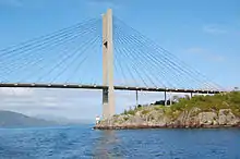 The cable-stayed section of the Nordhordland Bridge is anchored to Klauvaneset