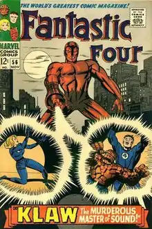 ![]() Klaw battles the Fantastic Four on the cover of Fantastic Four #56 (Nov. 1966). | |