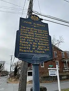 Kleinfeltersville is also home to Albright Memorial Church which is the location of Jacob Albright's grave. Jacob Albright (1759-1808) was the son of German immigrants. He preached to poor farmers in the area and rose to become Bishop of the Methodist Church.