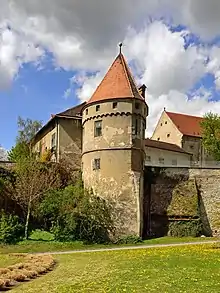 At the site of a former pioneer school of the Austrian Bundesheer, Klosterneuburg has various military buildings and former stores[3] which will be developed into a 12 hectare large new quarter of the town by 2030.[4] It is also the centre of a wine growing area, with several esteemed vintners, numerous Heuriger taverns, and the Federal Institute for Viticulture and Pomology, where Fritz Zweigelt bred the Zweigelt and Blauburger red wine grapes.