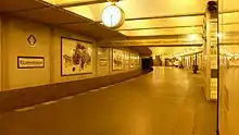 The station was added in 1975 to the Berlin District Monument List. Between 1984 and 1986, the Karl-Marx-Stadt housing construction complex carried out a complex renovation in preparation for the 750th anniversary of Berlin in 1987. This substantial damage, which was still from war days, eliminated and transformed the station into an "experiential" museum. The billboards, which were not needed in GDR times, provided space for a total of 22 enamel panels from the Schilderwerk Beutha, which depict the development of Berlin's public transport system on the basis of the respective vehicles. In addition, the front part of the railcar 12 of the Schoeneberg Underground from 1910 was restored to its original state and placed in November 1985 at the northern end of the platform between the two stairs. The car was previously used for transfer trips (car number 710 008 formerly 359) between the two East Berlin subway lines, was retired in 1982 after an accident and should symbolize in its current position the entrance of a small profile train coming from the Frankfurter Allee. The future is uncertain, because by 2020 a lift is to be installed at this point.[1]