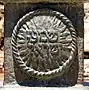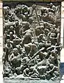 Opposite of Bar Kochba is the relief of young David after defeating Goliath. David holding aloft the severed head of Goliath, behind him his is harp on which the royal cape and crown are hung. At Davids' feet, is Goliath's dagger. David represents the triumph of the simple truth over the strength of the armor.