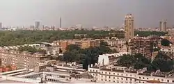 These were in turn demolished to make way for modernist buildings by Sir Basil Spence, completed in 1970. It was built to accommodate 23 officers, 60 warrant officers and non-commissioned officers, 431 rank and file, and 273 horses. The most prominent feature is a 33-storey, 94-metre (308 ft) residential tower, which is one of the two most prominent modern buildings as seen from Hyde Park along with the London Hilton on Park Lane. It was built by Sir Robert McAlpine between 1967 and 1970.[3]