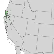 The knobcone pine, Pinus attenuata (also called Pinus tuberculata),[2] is a tree that grows in mild climates on poor soils. It ranges from the mountains of southern Oregon to Baja California with the greatest concentration in northern California and the Oregon-California border.[3]
