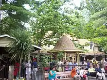 Knoebels has restaurants throughout the park, both sit-down and counter service in nature. These eateries have contributed toward the park winning awards from organizations which judge amusement park food, including Amusement Today's Golden Ticket Award for Best Food every year since 2000, until Dollywood narrowly edged Knoebels in 2012, and both parks tied for first place in 2013. Knoebels reclaimed the prize in 2015 and 2016. It lost again to Dollywood in 2017, but snatched the prize back in 2018.[26]