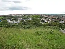 Inns Court and Filwood farms have medieval origins.[4] The surviving parts of Inns Court, originally Inyn's Court, are now part of the former Holy Cross Inns Court Vicarage and the staircase turret is now a Grade II* listed building.[10] The building is in the process of repair and is on the "at risk" register.[11] An isolation hospital was built at Nover's Hill in 1892, eventually superseded by a new hospital at Ham Green, near Pill, which opened in 1927.[4][12] The site is now occupied by the Knowle DGE (DGE standing for Discovery, Guidance and Enjoyment) Special School.[13][14] In the 1920s, the area was still rural in nature, mostly agricultural and allotment land, including Filwood Farm, Inns Court Farm and Hengrove House. The old field boundaries influenced the subsequent development.[4]