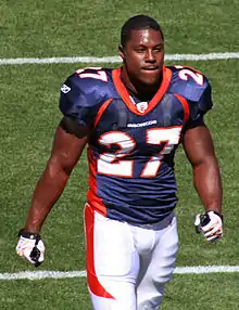 Moreno was drafted by the Denver Broncos in the first round with the 12th overall pick, which was their first of two first-round picks in the 2009 NFL Draft.[34] He was the first running back and the second of six Georgia Bulldogs to be selected that year.[35] Moreno chose to wear the number 27 on his jersey, the same number used by the late Darrent Williams. He received permission from Williams's mother Rosalind. Moreno said he would honor the number, and volunteer at the Darrent Williams Teen Center.[36]