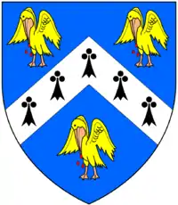 - Wadham, Knowstone the original home of the Wadhams, who took their name from the manor, later of Edge, Branscombe Devon, and then Merryfield, Ilton Somerset, the most prominent of whom was Nicholas Wadham (1531/2– 1609), who with his wife Dorothy Wadham was the co-founder of Wadham College, Oxford.[2]