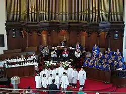 There is also a great support and tradition for missionaries, both on the home and International scenes. There is a current roster of 46 (19 couples), as well as 17 "Phase 2" Missionaries (4 couples) who are supported in their retirement years; along with others who have been linked through liaisons with other recognized organizations including the Presbyterian Church.