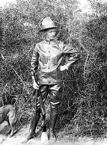 By 1919, a large herd was peacefully centered about the Addo area of the Eastern Cape. Farmers in this area had been sold their farms at greatly reduced rates and favourable terms because of the elephant presence. Nevertheless, these farmers complained to the authorities about damage to their crops, broken water pipelines and reservoirs, and even loss of lives, though it later transpired that the lives lost were those of hunters tracking and killing elephants. An extermination order was given by the Provincial Administration, due to conflict between farmers and the elephants over dwindling water resources and the threat posed to the future agricultural development.[9] Initially, only a reduction in numbers was contemplated, but, on 1 April 1919, the Administrator of the Cape - Sir Frederic de Waal - argued in favor of total extermination of all the elephants. From June 1919 to August 1920, the professional hunter Major P. J. Pretorius (i.e. the “Jungle Man”) shot a figure of "120-odd" elephants, that reduced the largest population in South Africa from about 130 to 16 individuals.[9] Allegedly, a public debate - including key figures Rev. J.R.L. Kingon and Major Pretorius - took place, in which a handful of individuals convinced the Provincial Administration to spare 16 animals.[9] The remaining elephants were to be left in the Addo Reserve. Later, Pretorius applied for and was granted permission by the government in 1920 to shoot one of the sequestered 16. The shooting accounted for five more elephants. Spoils from the initial part of the campaign went to the Province, but from January 1920 onwards they were the property of Pretorius, who had been approached by various museums for specimens to add to their collections – the South African Museum received four, the Amathole Museum two and eight to the British Museum of Natural History.[10] Pretorius had been requested to record measurements of the elephants that he had shot, but these were never made available.