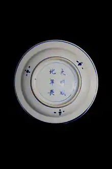 Tianqi porcelain or ko sometsuke refers to Chinese underglaze blue porcelain made in the unofficial kilns of Jingdezhen (景德镇) for a largely Japanese market in the 17th century. The term Tianqi (天啓; tenkei in Japanese) is a reference to the era name of the reign of the Tianqi Emperor (r. 1621–1628) during the late Ming dynasty, but the style and the name are not limited to his reign. Over the same period the related Transitional porcelain was being made.
