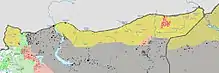 The Kobanî Canton was attacked by ISIL militants for several months. In September 2014, ISIL militants occupied most of Kobanî Canton, seizing more than 100 Kurdish villages.[13][14] As a consequence of the ISIL occupation, up to 200,000 Kurdish refugees fled from Kobanî Canton to Turkey.[13]