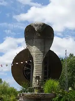 Kobra features two large snake statues at either end of the track; giving the ride its name. Riders sit at the edge of a circular ride car, which spins along 90m of track at 43 mph. The ride model includes a camel back hill in the centre of the track to give the car airtime as it travels over.