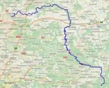 listen)) is a 169 km (105 mi)-long[2] right tributary of the Neckar in the north-eastern part of Baden-Württemberg, Germany. The name "Kocher" originates from its Celtic name "cochan" and probably means winding, meandering river. Its total drainage area is 1,960 km2 (760 sq mi).[1] The Kocher rises in the eastern foothills of the Swabian Alb from two karst springs, the Schwarzer (black) Kocher and the Weißer (white) Kocher, that join in Unterkochen near Aalen. The Schwarzer Kocher is approximately 8 km (5.0 mi) long. Its source discharge varies between 50 L/s and 4,000 L/s with an average of 680 L/s. The 3.3 km (2.1 mi) long Weißer Kocher has an average discharge of 400 L/s.