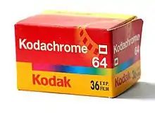 The use of transparency film declined in the 1980s and 1990s, which, combined with competition from Fuji's Velvia slide film, caused a drop in Kodachrome sales.[7] Some business analysts speculated that heavy subsidies by the Japanese government propped up Fuji and may have even allowed dumping of Fuji's films at below the cost to manufacture them.[50] Kodachrome products were gradually discontinued and on June 22, 2009, Kodak announced that the remaining film, Kodachrome 64, would no longer be manufactured.[51][52]