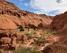 Primary recreational activities in Kodachrome Basin State Park include photography, wildlife watching, camping, and hiking the park's several trails. Popular sites include Chimney Rock, Shakespeare Arch (which collapsed[7] in 2019), and Ballerina Geyser. Stargazing is popular as the park sees little light pollution. Grosvenor Arch, an intricate double arch located ten miles south east of the park in the Grand Staircase–Escalante National Monument is a popular destination for many visitors. Kodachrome Basin State Park has 55 campsites, two of which are group sites as well as available showers. Campsites can be reserved at Reserve America. There are also two bunkhouse cabins inside the state park for lodging, managed by the park.[8] Horseback rides are also available throughout the park and surrounding wilderness areas.