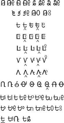 The script uses a combination of 26 consonant letters, eight vowel letters and a diphthong marker. Each letter represents a single sound and there are no capital letters.[15] A computer-based font has been created.[17]