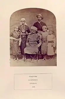 Kodava people are the native speakers of Kodava language are origins of district of Kodagu.[33] As per 1991 census, the speakers of Kodava Takk make up to 0.25% of the total population of the Karnataka state. According to Karnataka Kodava Sahitya Academy, apart from Kodavas, 18 other ethnic groups speak Kodava Takk in and outside the district including Amma Kodavas, Kodava Heggade, Iri, Koyava, Banna, Madivala, Hajama, Kembatti, and Meda.[34]