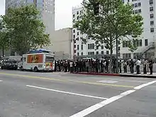 Kogi Korean BBQ is a fleet of five fusion food trucks in Los Angeles famous both for their combination of Korean with Mexican food and also for their reliance on Internet technology, especially Twitter and YouTube, to spread information about their offerings and locations.[1] Highlights of typical fare include Spicy Pork Tacos, Kimchi Quesadillas and Short Rib Sliders. Its owner/founder, Mark Manguera, a Filipino-American, married into a Korean family and was inspired to combine Mexican and Korean food as a result.[2] The food truck has won much recognition, including a Bon Appétit Award in 2009 and "Best New Chef" for Roy Choi by Food & Wine in 2010, the first for a food truck.[3][4]