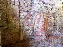 The site is best known for its Temple of the Masks, an Early Classic pyramid whose central stairway is flanked by huge humanized stucco masks. The Temple was built around 500 A.D. and is one of the oldest structures at Kohunlich. After 700 A.D., this temple was covered over with a Terminal Classic construction, which protected the masks and accounts for the marvelous state of their preservation today. The only standing remains of the later temple are some steps in the lower portion of the stair.
