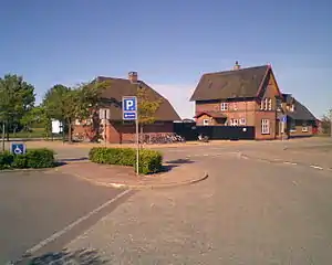 The station building from 1876 was designed by the Danish architect Niels Peder Christian Holsøe (1826–1895), known for the numerous railway stations he designed across Denmark in his capacity of head architect of the Danish State Railways.[3]