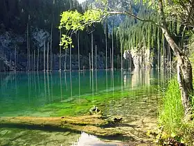 - Lake Kaindy. Located 11 km east of the Kolsay Lakes, Kaidy Lake is located by the Chilik River. The lake is known for its mirror-smooth reflection and stands of dead spruce trunks rising from the water. It was formed in 1911 (when an earthquake caused a landslide that blocked one end of the gorge).[6]