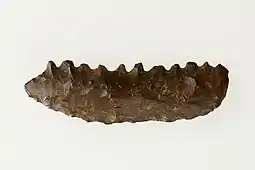 Excavations at Kom K and W yielded a plethora of flint artifacts including axes, adzes, projectile points, concave base points, sickle blades, scrapers, tabular knives, gouges, microliths, and pebble-butted and pebble-backed tools.[1][5] Excavations at Kom W also revealed a concentration of quern-stones around the area, which was not found at Kom K.[1][6] Personal ornaments such as ostrich eggshell beads, bone rings, stone beads, and a fragment of a marine shell bracelet or large ring have been excavated at the sites.[3]