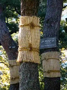Komomaki (菰巻き, komomaki) are straw belts, also known as waramaki, wrapped around trees during winter in Japan to protect them against pests. They are wrapped around pine trees, a custom that dates back to the Edo period.[1]