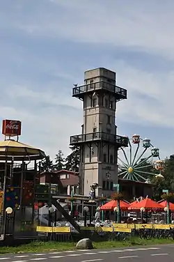 Julianatoren (English: Juliana Tower) is an amusement park which is located in the municipality of Apeldoorn.[2] The park is built around the Queen Juliana Tower, which was built in 1910, and is currently a rijksmonument (listed building). The tower was built next to Het Loo Palace, to celebrate the birth of Queen Juliana of the Netherlands at the palace in 1909.[3] Originally the tower was called Prinses Juliana Toren (Princess Juliana Tower) between 1910 and 1948, with an interval during the Second World War between 1940 and 1945 when it was called Juliana Toren (Juliana Tower). They are 450,000 visitors in 2009.[4]