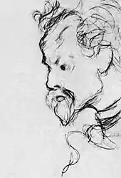 In 1886 Balmont graduated from the much hated gymnasium ("It completely ruined my nervous system." he remembered in 1923).[10] and enrolled in Moscow State University to study law.[11] There he became involved with a group of leftist activists and was arrested for taking part in student unrest.[10] He spent three days in jail, was expelled from the University, and returned home to Shuya.[12] In 1889 Balmont returned to the University but soon quit again after suffering a nervous breakdown. He joined the Demidov Law College in Yaroslavl but dropped out in September 1890 deciding he'd had enough formal education.[3] "I simply couldn't bring myself to study law, what with living so intensely through the passions of my heart," he wrote in 1911.[10][13] In February 1889 he married Larisa Mikhailovna Garelina; unhappy in marriage, on 13 March 1890 Balmont attempted suicide by jumping from a third-story window, leaving him with a limp and an injured writing hand for the rest of his life.[14] The year he spent recuperating from his suicide attempt became a turning point for Balmont, who, in his words, experienced 'extraordinary mental agitation' and envisaged his 'poetic mission.'[9][15]