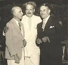 ![]() Konstantinos Kotzias (at the centre) with orchestra conductors Dimitri Mitropoulos (left) and Filoktitis Oikonomidis (1936) | |