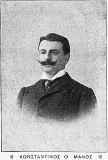 Konstantinos Manos (Greek: Κωνσταντίνος Μάνος; 1869–1913) was a Greek politician, poet, soldier and sportsman and former mayor of Chania.