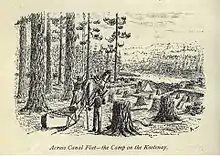 In September 1859, Palliser traveled into the Kootenay River valley to find a suitable path for a trade route and possibly a railroad. Instead of crossing the Rockies, as Thompson did, Palliser set out from Fort Colville, a Hudson's Bay Company trading post near Kettle Falls on the Columbia River.[44] He then proceeded up the Pend Oreille River (noted as 'Pendoreilles') and crossed into the Kootenay River valley, which in his records was either the "Kootanie" or "Flat Bow River".[45] Kootenay Lake was called "Flat Bow Lake". Palliser was told by Ktunaxa tribal members that a trail already existed along the Kootenay River, terminating at Columbia Lake, but was in decrepit condition (having been out of use for many years) and "entirely impracticable for horses".[46] They re-blazed the trail for many miles and returned to Kootenay Lake by mid-October of the same year.[47] The expedition's findings were later to become important transportation routes through the Rockies to the Kootenays area, and the trail that they followed later became the route of the Canadian Pacific Railway.[48]