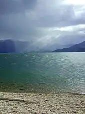 The name "Kootenai" was also used by French Canadians to refer to the Ktunaxa in the 19th century. "Kootenai" is thought to be a word meaning "water people" in an Algonquian language.[13][14] The river is still referred to as Kootenai in the United States,[2] while in Canada, where two-thirds of its length and 70 percent of its drainage basin lies, the river is spelled slightly different into Kootenay.[7]