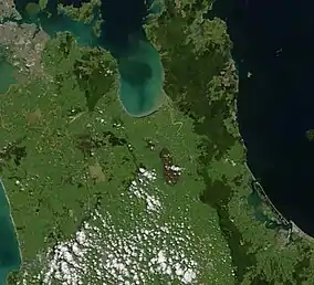 ![]() Kopuatai Peat Dome is the brown footprint-shaped area at centre | |