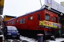 The only third generation car preserved is 1181, which is at Dongmokpo station on the old Honam Line alignment.[16]