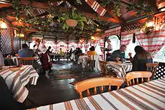The menu represents traditional Ukrainian cuisine dishes: nourishing borshch with pampushky (garlic donuts), dumplings, pancakes with various fillings, chicken Kiev (cutlets a-la Kyiv). “Korchma Taras Bulba” offers homemade potions and wines, liqueurs, Russian vodka or Ukrainian gorilka.[6] There is a special "express menu". * All agricultural products for “Korchma Taras Bulba” are grown at own farm "Kazachie" Ltd., situated in Ryazan Region.