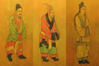 The Three Kingdoms of Korea consisted of Goguryeo, Silla, and Baekje. Silla and Baekje controlled the southern half of the Korean Peninsula, maintaining the former Samhan territories, while Goguryeo controlled the northern half of the Korean Peninsula, Manchuria and the Liaodong Peninsula, uniting Buyeo, Okjeo, Dongye, and other states in the former Gojoseon territories.[22]