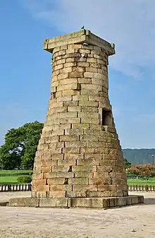 Later Silla carried on the maritime prowess of Baekje, which acted like the Phoenicia of medieval East Asia,[76] and during the 8th and 9th centuries dominated the seas of East Asia and the trade between China, Korea and Japan, most notably during the time of Jang Bogo; in addition, Silla people made overseas communities in China on the Shandong Peninsula and the mouth of the Yangtze River.[77][78][79][80] Later Silla was a prosperous and wealthy country,[81] and its metropolitan capital of Gyeongju[82] was the fourth largest city in the world.[83][84][85][86] Later Silla experienced a golden age of art and culture,[87][88][89][90] as evidenced by the Hwangnyongsa, Seokguram, and Emille Bell. Buddhism flourished during this time, and many Korean Buddhists gained great fame among Chinese Buddhists[91] and contributed to Chinese Buddhism,[92] including: Woncheuk, Wonhyo, Uisang, Musang,[93][94][95][96] and Kim Gyo-gak, a Silla prince whose influence made Mount Jiuhua one of the Four Sacred Mountains of Chinese Buddhism.[97][98][99][100][101]