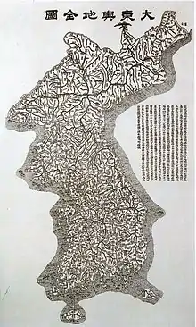 "Korea" is the modern spelling of "Corea", a name attested in English as early as 1614.[9][10] Korea was transliterated as Cauli in The Travels of Marco Polo,[11] of the Chinese 高麗 (MC: Kawlej,[12] mod. Gāolì). This was the Hanja for the Korean kingdom of Goryeo (Korean: 고려; MR: Koryŏ), which ruled most of the Korean peninsula during Marco Polo's time. Korea's introduction to the West resulted from trade and contact with merchants from Arabic lands,[13] with some records dating back as far as the 9th century.[14] Goryeo's name was a continuation of Goguryeo (Koguryŏ) the northernmost of the Three Kingdoms of Korea, which was officially known as Goryeo beginning in the 5th century.[15] The original name was a combination of the adjective go ("high, lofty") with the name of a local Yemaek tribe, whose original name is thought to have been either *Guru (溝樓, "walled city," inferred from some toponyms in Chinese historical documents) or Gauri (가우리, "center"). With expanding British and American trade following the opening of Korea in the late 19th century, the spelling "Korea" appeared and gradually grew in popularity;[9] its use in transcribing East Asian languages avoids the issues caused by the separate hard and soft Cs existing in English vocabulary derived from the Romance languages. The name Korea is now commonly used in English contexts by both North and South Korea.
