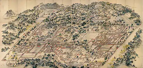 In 1592 and again in 1597, the Japanese invaded Korea; the Korean military at the time was unprepared and untrained, due to two centuries of peace on the Korean Peninsula.[134] Toyotomi Hideyoshi intended to conquer China and India[135] through the Korean Peninsula, but was defeated by strong resistance from the Righteous Army, the naval superiority of Admiral Yi Sun-sin and his turtle ships, and assistance from Wanli Emperor of Ming China. However, Joseon experienced great destruction, including a tremendous loss of cultural sites such as temples and palaces to Japanese pillaging, and the Japanese brought back to Japan an estimated 100,000–200,000 noses cut from Korean victims.[136] Less than 30 years after the Japanese invasions, the Manchus took advantage of Joseon's war-weakened state and invaded in 1627 and 1637, and then went on to conquer the destabilised Ming dynasty.