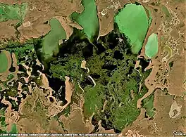 Korgalzhyn (Kazakh: Қорғалжын; Russian: Кургальджин) is a lake in Korgalzhyn District, Akmola Region, Kazakhstan.[2][3][4][5] Korgalzhyn is the main body of water of the Korgalzhyn group of lakes, which includes Birtaban, Sholakshalkar, Shalkar, Zhanybekshalkar, Uialyshalkar and Zhandyshalkar.[6]
