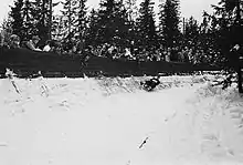 The track route was built under supervision of Sigurd Lund and Carl Venderboe in 1949 and 1950 and subsequently corrected by Cattani.[10] The only fixed installation was a water main which ran along the track,[9] using Øvresetertjern as its water source.[10] Engineer Luigi Angelini from Switzerland was hired to supervise the construction of the curves,[9] which cost NOK 615,000.[11] The track was first constructed for training in 1951 and then for the Olympics in 1952.[12]