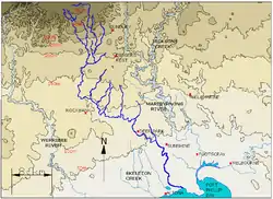 ![]() Contour map of the Kororoit Creek and its tributaries, in Greater Melbourne. | |