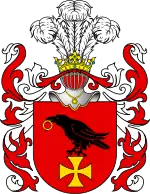 The earliest written record of the family dates from the 15th century.[3] In 1457 the knight, John (Jan (Korwin) Szymanowski), returned to the small village of "Szymany", from the Thirteen Years' War, also called the War of the Cities, fought between 1454–66 by the Prussian Confederation, allied with the Kingdom of Poland, against the State of the Teutonic Order. He is considered the founder of the family. John came from a clan bearing the coat of arms, "Jezierza", which has its beginnings among pre-Christian tribal warriors.