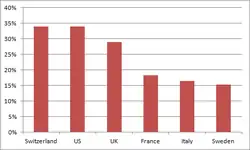According to official statistics, Kosovo benefits from 450 - 500,000,000 million euros in annual revenues as a result of the diaspora. Around 30 percent of households in Kosovo have access to international remittances – in form of money or goods. 49% of donors live in Germany, 24% in Switzerland. Remittances made 17.5 percent of country's GDP in year 2000 (275 million Euros).[10]