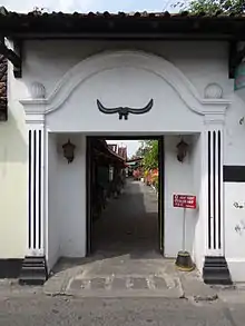 Townscape in Kotagede neighborhood consists of traditional wooden joglo houses and the eclectic merchant houses. Merchant houses in Kotagede are walled to protect their accumulating possessions during the 18th-19th century wealthy period of Kotagede.[8] These merchant houses sometimes combine the element from the wooden traditional Javanese house with the brick Dutch architecture to form an eclectic blend of Javanese-Dutch architecture known locally as "Kalang Houses".[11]