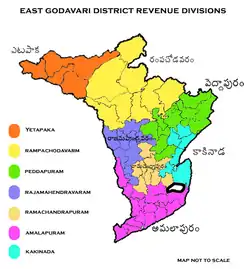 Kothapeta revenue division is a proposed administrative division in the Konaseema district of the Indian state of Andhra Pradesh. The division awaits a final notification from the Government of Andhra Pradesh and would become one of the resultant three revenue divisions in the district. It is proposed to comprise seven mandals under its administration. Kothapeta is the divisional headquarters.[1]